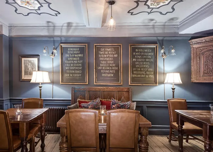 Standing adjacent to York Minster, Guy Fawkes Inn serves as both a historic site and a cozy accommodation option. Its en-suite rooms, many featuring views of the Minster, maintain several original features like gas lighting and timber staircases. The inn offers a dining experience in a candlelit atmosphere featuring pub food made from local ingredients. Nearby attractions include the Ghost Walk Experience and the National Railway Museum, appealing to history lovers.